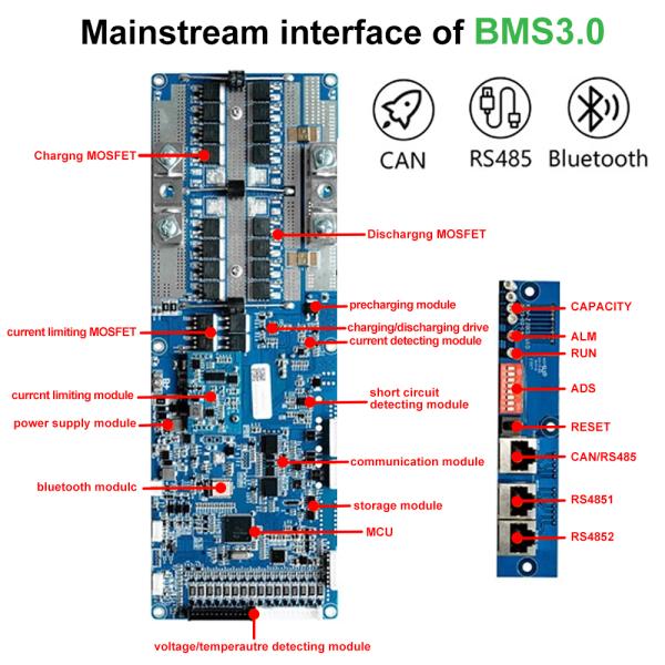 2.We can provide two kinds of BMS boards with different communication modes, one is BMS using CANBUS communication protocol and the other is BMS using RS485 communication protocol, so that customers can have more flexible choices