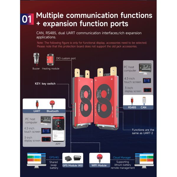 3.2V LFP 3.7V NMC 8S300A Smart BMS Bluetooth 24V Lithium ion battery balancing Images |